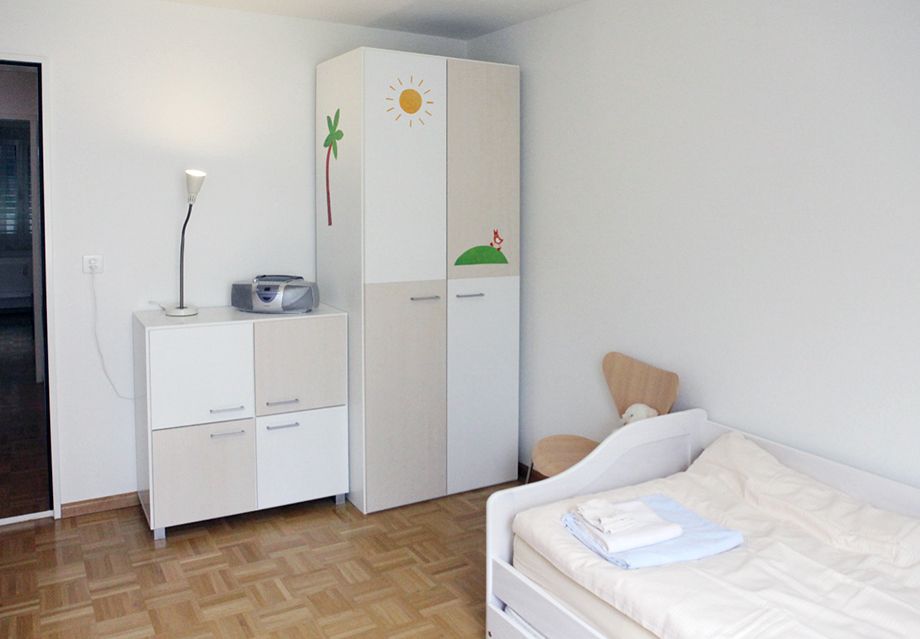 Während der Therapiephase wohnt die Familie in einer voll ausgestatteten Wohnung. Diese liegt ganz in der Nähe des Therapiezentrums, nur eine Tramstation entfernt. In der Duplex-Wohnung gibt es drei Schlafzimmer, sowie einen grossen Wohn- und Essbereich. Auch eine Waschmaschine und ein Wäschetrockner stehen zur Verfügung.